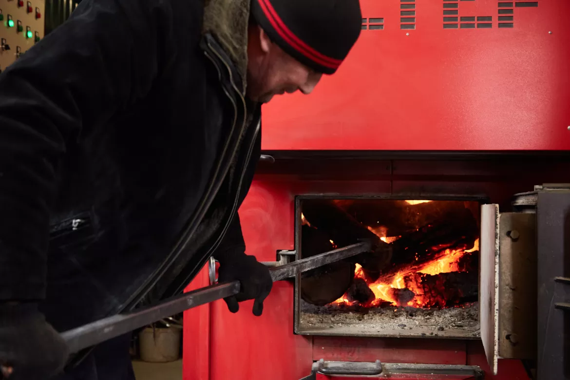 ユニセフが支援した固形燃料ボイラーは、校内を快適な温度に保っている(ウクライナ、2024年3月撮影)