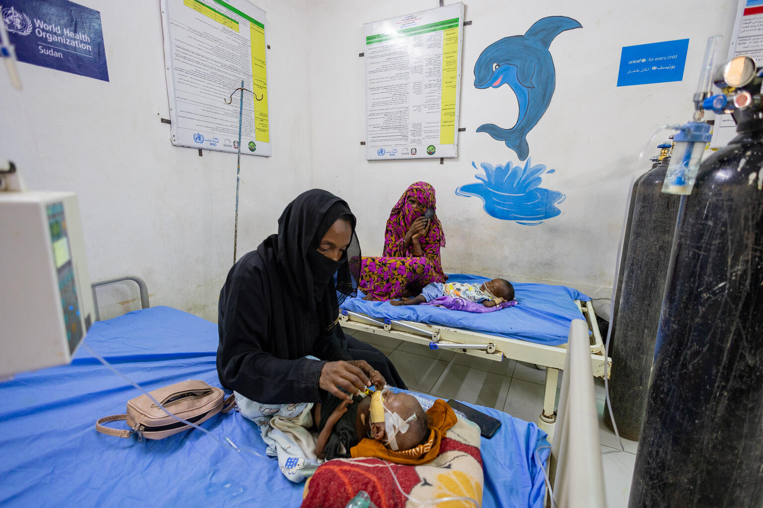ポートスーダン小児病院に入院して治療を受けている、重度の急性栄養不良の子どもたち(スーダン、2025年1月13日撮影)