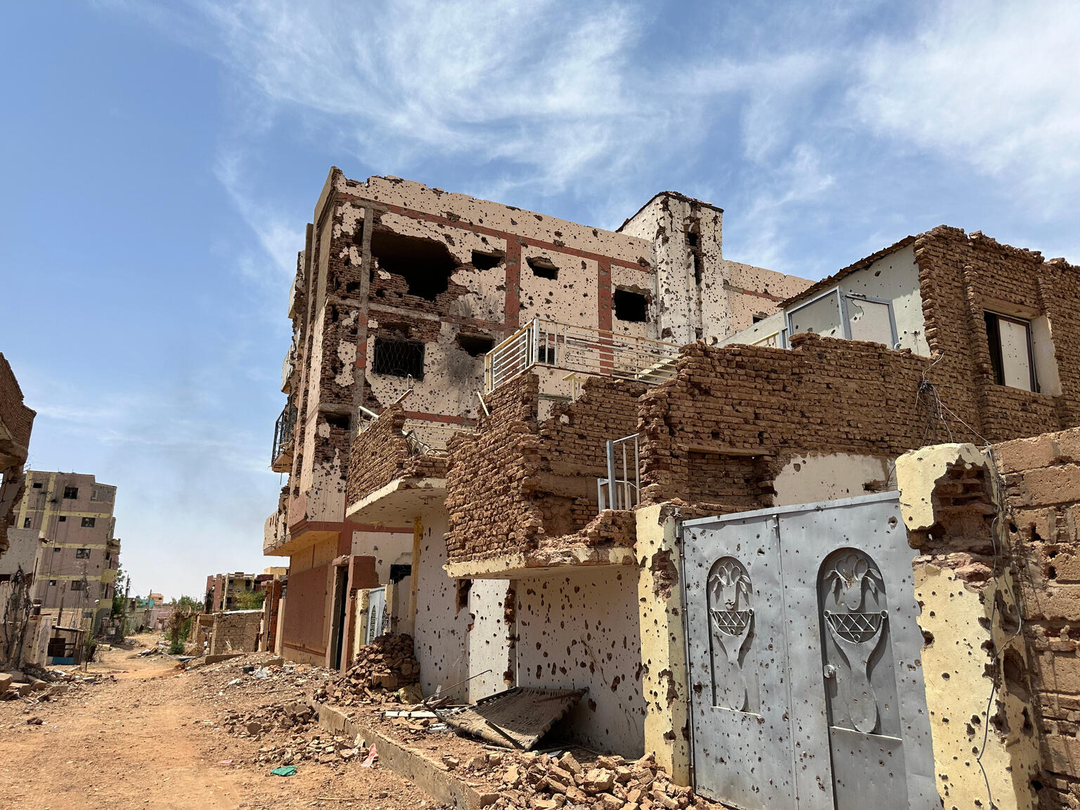 砲撃を受け、廃墟と化したオムドゥルマン市内の住宅や建物の様子(スーダン、2024年8月11日撮影)