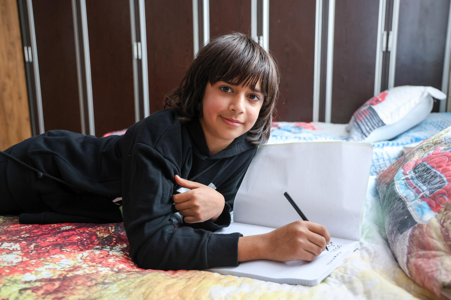 さまざまな困難に直面しながらも、必要な支援を受けて教育を受け続けることができたテイムッラーさん。ある科目について話すときには特に熱がこもります。「まだはっきりとは分からないけれど…数学が大好きなんだ。数学には終わりがないように感じられて、学べば学ぶほど、新たな問題や方程式がどんどん出てきて面白いんだ」と興奮した様子で話します。将来を思い浮かべ、目を輝かせてこう続けます。「お父さんは僕に薬剤師になってほしいみたい。それもいいのだけれど、僕は数学の教授にもなれるかなと思う。いや、きっと両方なれるはず!」