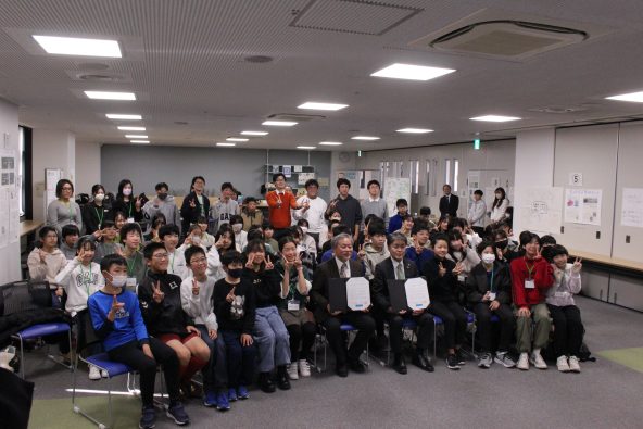 覚書締結式は、令和6(2024)年度の「豊田市子ども会議」最終日にあわせて豊田市青少年センター交流室で開催され、小学校5年生から高校生までの52人の子ども委員と大学生サポーターも参加しました。