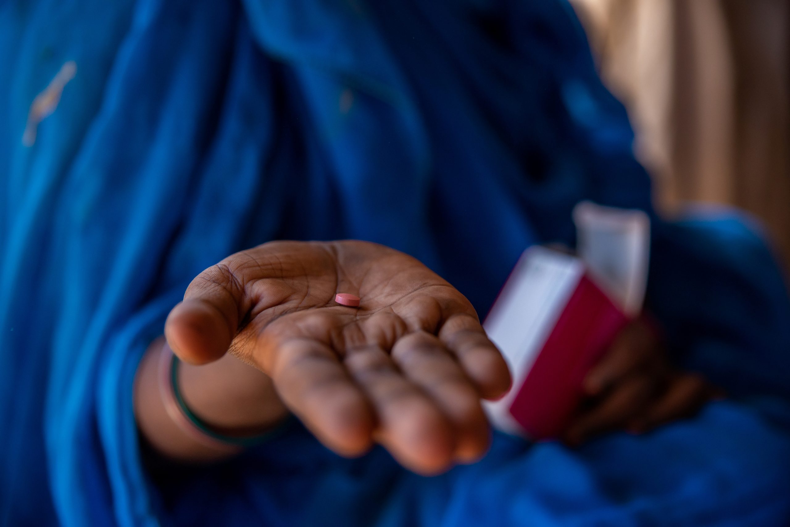 カッサラ州でのキャンペーンで、鉄分の錠剤を受け取った妊婦(スーダン、2024年12月2日撮影)