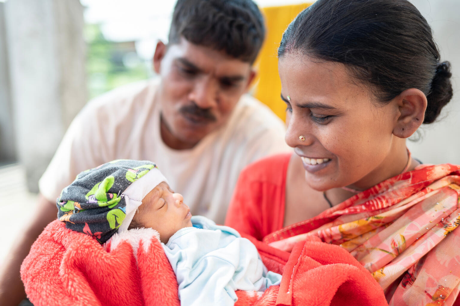ユニセフが支援する新生児専門病棟で治療を受けた赤ちゃん。現在は自宅で元気に過ごしている(インド、2024年10月17日撮影)