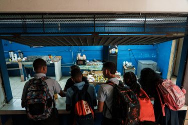 パナマにある学校の売店で、スナックを買う子どもたち(パナマ、2024年4月9日撮影)