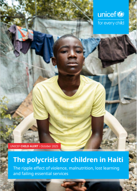 ユニセフ(国連児童基金)が本日発表した報告書「チャイルド・アラート:ハイチの子どもたちが直面する複合的危機」によると、ハイチで暴力によって住まいを追われた子どもの数は過去1年間でほぼ倍増し、現在では68万人もの子どもが家から引き離されています。ハイチ全土では130万人以上が避難を余儀なくされており、暴力の激化、サービスの崩壊、人道支援の行き届かない状況が、ハイチをさらに深刻な危機へと追い込んでいます。