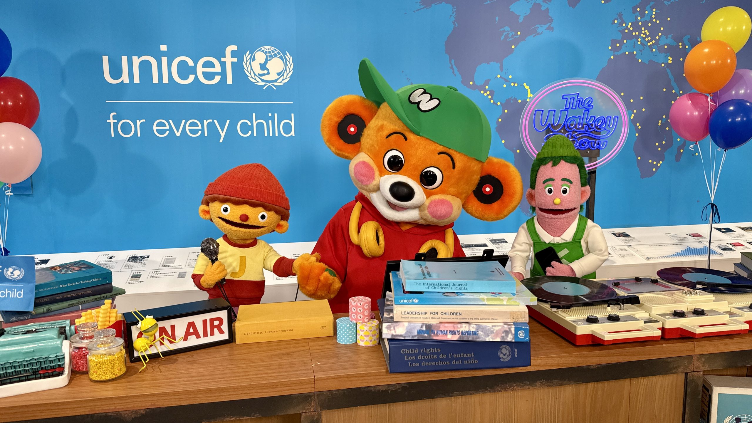 登校前の小学生に向け、メインキャラクター・ウェイキーとその仲間たちが、今日一日が楽しくなるinterestingな情報を届けるエデュテインメントショウ。ほぼ全編がユニセフハウス(東京都港区)で撮影された「ユニセフ・ソングパーティー」が2日間にわたって放送されます。ユニセフのキャサリン・ラッセル事務局長と長谷部誠日本ユニセフ協会大使も出演。日本ユニセフ協会とこども家庭庁が共催する「こどものけんりプロジェクト」応援キャラクターで、同番組内月1回のコーナー「しらべて!ジーン&ケーン」に登場するジーンとケーンも番組を盛り上げます!
