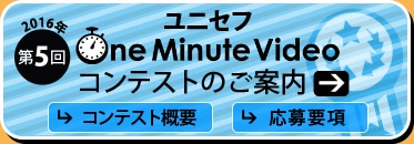 (公財)日本ユニセフ協会では、2010年よりOne Minute Video事業の取り組みを始めました。One Minute Videoは、メッセージを1分間の映像で伝えるという活動です。One Minute Videoを通じて、子どもたちの協調性、創造力、表現力などが育くまれると信じています。