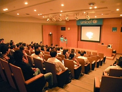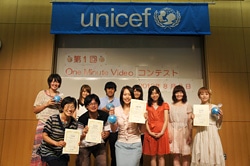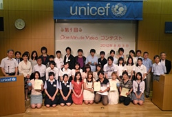 第1回One Minute Videoコンテストが8月3日(金)、ユニセフハウスで開催されました。 テレビやインターネット、携帯電話など情報があふれる現代社会では、子どもたちが情報の受け手としてだけでなく、情報の発信者として情報を適切に判断し、活用できる能力を身につけることが求められています。One Minute Videoは1分間の映像制作を通じて、自分たちのメッセージを世界へ向けて発信し、国籍を超えて興味や意見、夢や希望を分かち合う活動です。世界では、アフリカやアジア、中東をはじめ多くの国々で実施され、ユニセフはOne Minute Videoプロジェクトを支援してきました。このたび、日本でもOne Minute Videoの制作を通じて、子どもたちが自分たちの考えや思いを表現し、国際的視野を持つ地球市民に育ってくれることを願い、日本ユニセフ協会主催第1回One Minute Videoコンテストが開催されました。