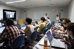 コンテストの開始前には、ミニ講習会が行われました。ミニ講習会では、経験豊富な学生たちによるOne Minute Videoの制作を体験するワークショップが行われ、参加者たちは映像制作の面白さに触れました。また、日本音楽著作権協会(JASRAC)の三木清氏から映像制作にあたって注意すべき音楽著作権のお話を、そして、目白大学の多田孝志教授から映像制作と多文化理解についてのお話をいただきました。