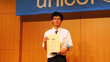 プレゼンター:早水 研((公財)日本ユニセフ協会 専務理事) 最優秀賞は比較的すんなり審査委員の中で決まりました。作者の個人的な経験を元にしているのかな、と思いますが、これがすごくユニバーサルな感情で、特に見る人の共感を呼び起こす、これが次のアクションに繋げていくために重要なことじゃないかと思っています。作者のご自身の経験とそれを踏まえて次へどのように結びつけていくかということをご自分が現すと同時にみなさんにも考えていただくこと、そのような意味で大変優れた作品だと思っております。