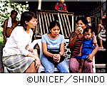 アグネス大使がフィリピンを視察しました アグネス・チャン日本ユニセフ大使は、6月2日から6月7日までフィリピンを訪問。同国で10万人が犠牲になっているといわれる子ども買春の実状と問題への取り組みを視察しました。初日はまずセブ島を訪問。ここはリゾート地として有名ですが、近くの島々から子どもたちが買春のために売られてくるというスラムがあります。アグネスさんはスラムのリーダーに会い、子ども買春をなくすために取り組みはじめている住民たちの努力について話を聞きました。 3日は、NGOが運営しているシェルターを訪問。買春や性的虐待の犠牲になった子どもたちが、心の傷を癒すために受けているグループ・セラピーにアグネスさんも参加。「ひとりひとりの辛い体験を聞き、一生分の涙を流した」というアグネスさん。 また、子どもたちが企画するラジオ番組「Voice of Children(子どもたちの声)」にもゲスト出演しました。今回の放送は「性について」の特集で、アグネスさんは前夜の準備ミーティングから参加し、買春や性的虐待について子どもたちと語り合いました。 3日夜からマニラに移動、スラムなどで演劇を通じて子どもの権利を訴えている劇団を訪問しました。翌日、マニラ市内のスラムで上演された演劇にはアグネスさんも出演しました。この劇団には、かつて買春の犠牲になった子どもたちもメンバーとして参加していました。 ケソン市にあるシェルターでは、16歳の時にウェイトレスの仕事とだまされてマニラに連れて来られ売春宿で働かされた19歳のリサさん(仮名)から話を聞きました。彼女は今、ソーシャルワーカーのアシスタントとして新しい道を歩みはじめています。アグネスさんは、元米軍基地に隣接するアンヘレス市の歓楽街で子どもたちを救うためにチラシを配るリサさんに同行し、歓楽街の状況も視察しました。 マニラの繁華街では、母親からの暴力が原因で13歳の時に家を飛び出し、生活のために売春せざるを得なかったという16歳のストリートチルドレンの少女と出会いました。「学校に行きたい。過去を消して全く新しい自分に出会いたい」という彼女の決意を聞きました。「フィリピンでは、子ども買春を厳しく取り締まる法律は出来ているし、ユニセフやECPATを始めとして、NGOの人たちもよくがんばっている。でも犠牲になる子どもたちは減っていません。子どもたちの心と身体を深く傷つけてしまう「買春」は絶対になくさなければならないもの。フィリピンの人たちの努力を応援していきたい」とアグネスさん。 アグネスさんのフィリピン視察の模様は、7月20日午後10時より、NHK衛星第1放送「ウィークエンドスペシャル」で放映されますので是非ご覧ください。 |