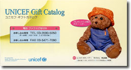 純白のユニセフ・タオルセット、ボールペン、テディ・ベア−などが掲載されています。