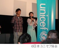 2005年8月8日(月)、映画動員数が100万人を突破したことを受け、渋谷シネフロントにて記念の舞台挨拶が行われました。その席上で、本映画主演の柳楽優弥さんから当協会大使のアグネス・チャンさんにこれまでに集まった2000万円を贈呈するセレモニーが行われました。目録を受け取ったアグネスさんは、支援への感謝を表すと同時にこの募金が子どもたちのために役立てられることを約束し、また「ぜひご家族で見ていただきたい映画です」とコメントしました。