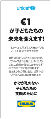 世界34ヶ国と地域で計240店舗を展開するイケアは、グループ全体を通じて、ユニセフを支援しています。昨年に引き続き、2006年も、世界中で、イケア、ユニセフ、