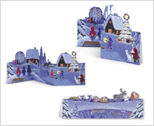 ご自分でカードが作れるユニークなカード・セットです。雪山をかたどった変型カードを台紙にして、子どもたちや家、トナカイなどのシールを次々に貼っていきましょう。