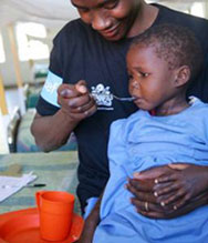 干ばつなどによる食糧危機が続くマラウイでは、5歳未満の子どもの48%が中度・重度の栄養不良に苦しんでいます。 シュガーレディ・ユニセフ基金が支援するプロジェクトでは、栄養改善施設に治療用のミルクや医薬品、必要な支援物資を提供するほか、コミュニティの栄養不良改善事業を支え、栄養不良に対処できる保健員を養成しています。