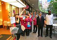 | 2007年「Free Scoop Night」東京ドームラクーア店の様子。松山社長、ブルキナファソ・カファンド臨時代理大使も参加されました。 |