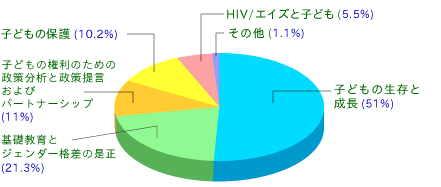 ユニセフの中期事業計画重点分野別の事業支出割合(2006年)