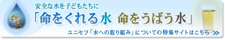 「水と衛生」の問題は、子どもたちの命や健康と密接に関わっています。日本ユニセフ協会でも、この夏「命をくれる水、命をうばう水」をキャッチフレーズにキャンペーンを展開しましたが、世界では、今なお、4億人の子どもたちが、清潔で安全な水を手にすることができません。そのために、多くの子どもたちが下痢性の病気による脱水症状で命を失ったり、寄生虫病に悩まされたりしています。