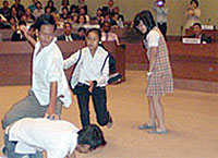 | 会合で披露された子どもの虐待についての劇の様子 |