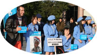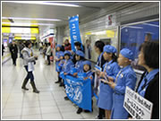 声を出すのは勇気がいります。でも、みんなでがんばりました! 池袋駅で |