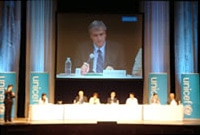 満場のよみうりホールで2時間余にわたり開催されたシンポジウム「気候変動と子どもたち」の様子は、基調報告、パネルディスカッションを含め、近日中に本ホームページ上で、動画で公開いたします。