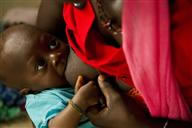 | シエラレオネのマケニにある病院で、母乳を飲む男の子(生後4ヵ月)。 |