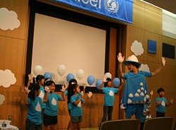 そして今年、 (財)日本ユニセフ協会は、 「手をあらおう。手をつなごう。」の合言葉のもと、「世界手洗いの日」プロジェクトを発足。日本の子どもたちに、開発途上国の衛生問題や正しい手洗いの大切さを知り、楽しく手洗いの習慣を身につけてもらうため、ダンサー・森山開次さん振り付けによる「世界手洗いダンス」(聖路加看護大学小口江美子先生監修)やポスター、リーフレットを制作しました。こうしたツールを活用していただきながら、学校やグループ、ご家庭のみなさんに、「世界手洗いプロジェクト」への参加を、広く呼びかけます