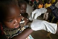 | はしかの予防接種を受ける赤ちゃん(中央アフリカ共和国)。 |