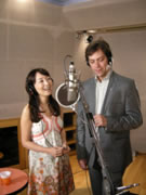 | 『ユニセフ・アンセム』レコーディング中のアグネス・チャン大使(左)とスティーブ・バラカット大使(右) |