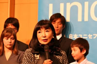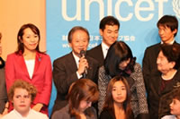 これを記念するイベントが、世界各地で開催される中、東京のユニセフハウスでは、鳩山幸総理夫人や、「子どもの権利条約」と同じ年に生まれた水泳の立石諒選手と入江陵介選手が、日本ユニセフ協会大使のアグネス・チャンさん、外務省人権人道担当大使の上田秀明さん、西町インターナショナルスクールの子どもたち、そして、忙しい公務の合間を縫って駆けつけてくださった、江田五月参議院議長はじめ多くの国会議員の方々と、「子どもの権利」採択20周年を祝うセレモニーが開催されました。