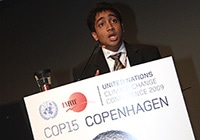 | 国連の第15回気候変動枠組条約会議(COP15)で意見を述べたモルディブ出身のユニセフ「気候大使」、モハメド・アグザム・マウムーンくん(15歳)。 |