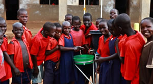 2010年から始まる3ヵ年の「SARAYA 100万人の手洗いプロジェクト」による支援では、のべ100万人以上の住民の方々に、正しい手洗いを伝えることで子どもたちの命を守ることを目標としています。支援活動では、手洗い設備の建設、子どもたちへの教育と自主的な衛生活動の支援、母親への啓発活動、現地メディアでの手洗いキャンペーンの展開などを行います。設備を整えるだけでなく、住民が石けんを使った正しい手洗いを知り、自ら広めていくことを目指しています。2010年1月には、先行して売上げの一部が寄付され、2月には、サラヤ株式会社と現地スタッフ、日本ユニセフ協会による第1回目の現地視察が行われました。すでにウガンダでの支援活動は始まっています。