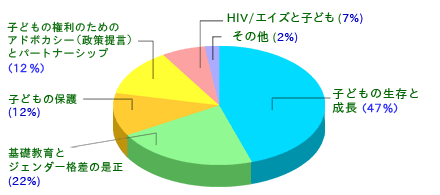 ユニセフの中期事業計画重点分野別の事業支出割合(2009年)