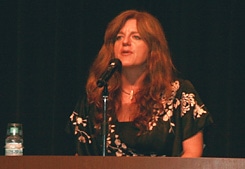 | 2010年7月15日に早稲田大学の大隈講堂で開催された人間の安全保障シンポジウムに、スピーカーとして登壇したユニセフ事務局次長ヒルデ・ジョンソン。 |