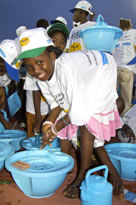 | 首都のサッカースタジアムに、10000人もの子どもたちが集まり、手洗いの大切さを学びました(2009年・マリ) |