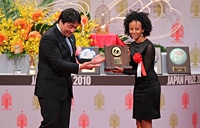 | 日本賞授賞式において、ユニセフ東京事務所の平林国彦代表より、ウィズ・キッズ・ワークショップのゼネラル・マネージャー兼共同設立者のブルクタウィット・ティガブ氏に対し、ユニセフ賞を贈呈。 |