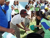 東ティモールの学校では子どもから家族、地域へと手洗いの習慣が広がるように運動を進めています。