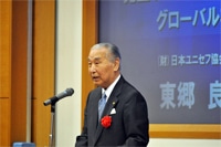 第一回推進協議会に続き、東京・代々木の国立オリンピック記念青少年総合センターで開催された公開シンポジウムでは、日本ユニセフ協会の東郷良尚副会長が「児童ポルノ排除の必要性とグローバル社会」と題した基調講演を行い、本問題への取り組みにおいて、グローバル社会の一員としての視点を持つことの重要性を強調しました。