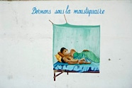 | マラリア蚊に刺されぬよう、蚊帳の使用を呼びかけている壁画(コンゴ共和国) |