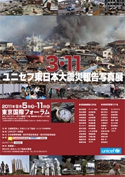 | 写真構成 | 大型写真(約120点)を展示 (1)日本新聞協会加盟の新聞・通信社(25社): 朝日新聞、毎日新聞、読売新聞、共同通信、時事通信、産経新聞、東京新聞、中日新聞、岩手日報、岩手日日、河北新報、福島民報、福島民友、東奥日報、デーリー東北、北羽新報、秋田魁新報、山形新聞、新潟日報、茨城新聞、静岡新聞、いわき民報、常陽新聞、千葉日報、埼玉新聞(順不同) (2)日本写真家協会、日本広告写真家協会会員はじめフリーカメラマン21人: 豊田直巳、野田雅也、高橋邦典、上田聡、田沼武能、西宮正明、江成常夫、野澤亘伸、熊切圭介、野町和嘉、桃井和馬、安達洋次郎、鍵井 靖章、花井 尊、久保靖夫、細江英公、森住 卓、桑原史成、佐々木康、Q・サカマキ、新藤健一(敬称略、順不同) (3)ユニセフの支援活動記録(日本ユニセフ協会他撮影) |