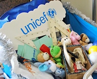 ユニセフサンタのソリの中身を見せちゃいます!子どもが元気に育つことのできるよう、手助けする支援物資がいっぱい!
