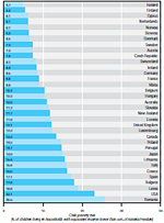 ヨーロッパの29ヶ国を対象に、 “1日3度の食事”、“学習のための静かなスペース”、 “インターネット接続”といった14の基本条件のうち、2つ以上が欠けている場合を剥奪状態にあると定義して、各国で剥奪状態にある子どもたちの割合を算出しています。