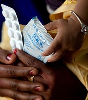 | 村のクリニックで乳児に支給された経口補水塩と亜鉛の錠剤(インド) |