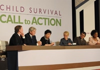 ヒラリー・クリントン米国務長官は、14日、ジョージ・ワシントン大学に集まった国際的な指導者たちに、子どもの死亡数を削減するための取り組みとさらなる資金援助を訴えました。