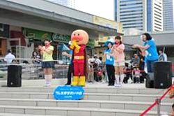 横浜市の横浜アンパンマンこどもミュージアムでは、アンパンマンが子どもたちと一緒に「世界手洗いダンス」を踊りました。 広場に設けられたステージの周りは来場中の子どもたちでいっぱいに!