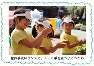 ”手をあらおう。手をつなごう。”を合言葉に、子どもたちに正しい手洗いを楽しく伝え、途上国の子どもたちが直面する衛生や命の問題を知ってもらう、「世界手洗いの日」プロジェクト。