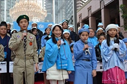 | アグネス大使と子どもたちによる元気な宣誓で、募金活動が始まりました。 |