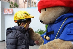 | 会場のあちこちで、募金活動をがんばってくれたパディントン。「募金してくれてありがとう。」言葉は話せない分、全身を使って、感謝の気持ちを一生懸命伝えていました。 |