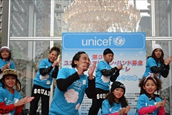 恵比寿ガーデンプレイスの中で5ヶ所に分かれて行われた募金活動。「世界の子どもたちのために!ユニセフ募金にご協力ください!」 寒さに負けない元気な声が恵比寿ガーデンプレイスに響き渡り、その声を聞いた老若男女さまざまな方々が、ユニセフ募金にご協力くださいました。皆様からいただいた募金は、当ハンド・イン・ハンド募金キャンペーンを通じて、世界の子どもたちの命を守るユニセフ募金として用いられます。